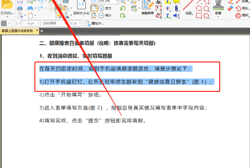 3.点击打开按钮之后我们在PDF文件中选取想要加密的那一段文字内容,选取之后点击界面左上方的文档选项。