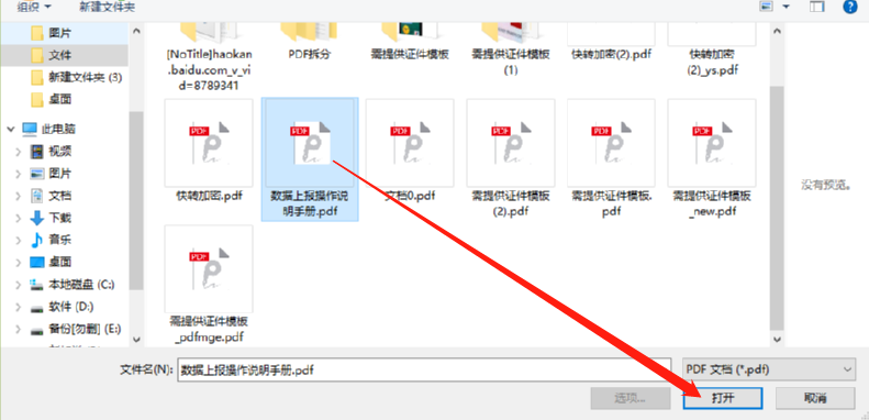 2.点击打开按钮之后下一步就会出现一个选择文件的界面了,在这个界面中我们选中目标PDF文件之后点击右下角的打开按钮即可。