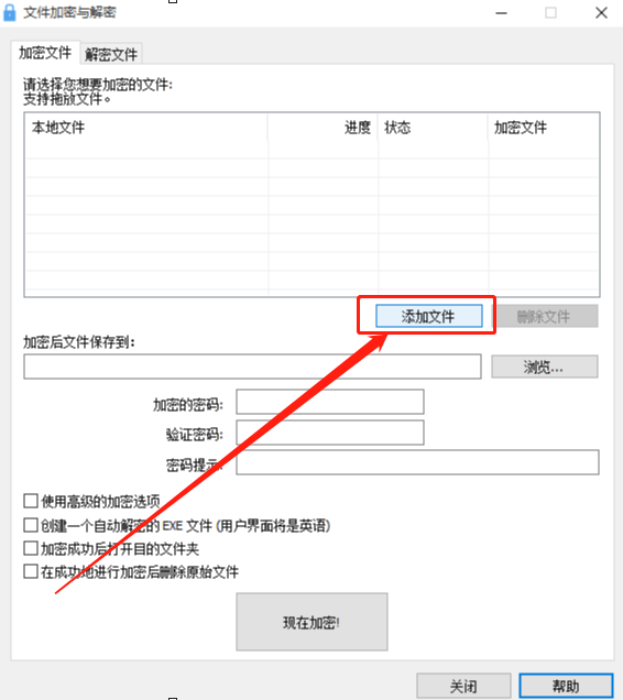 3.进入到加密文件的功能界面之后我们点击添加文件这个功能按钮,然后就可以选择想要加密的文件了。