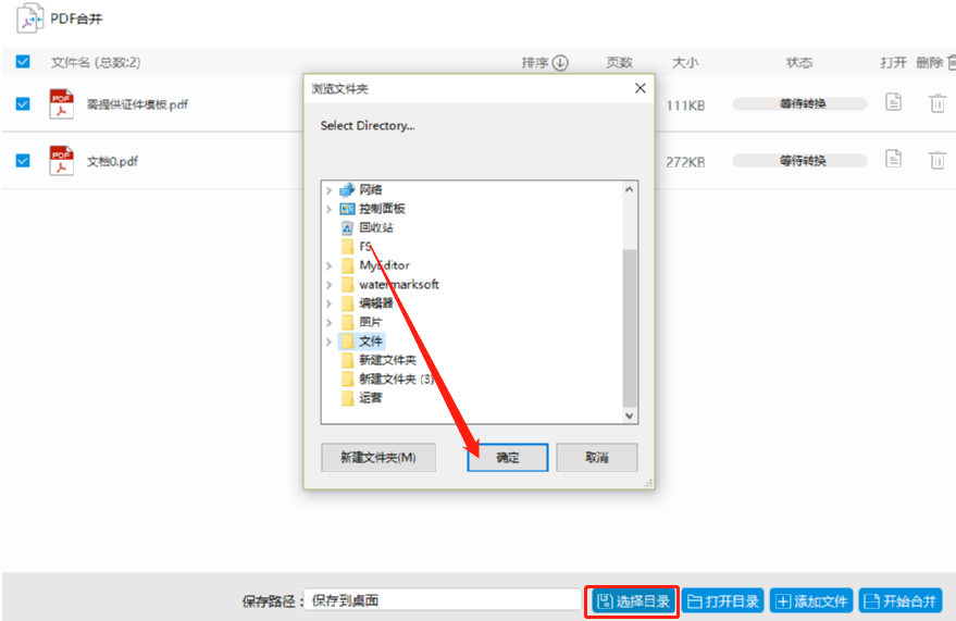 5.设置好文件合并的输出保存目录之后,下一步就可以点击界面右下角的开始合并这个按钮来开始合并文件的操作了。