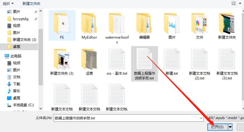2.点击这个添加文件的图标之后就会打开一个选择文件的界面了,我们选中想要转换的TXT文档之后点击打开按钮即可。