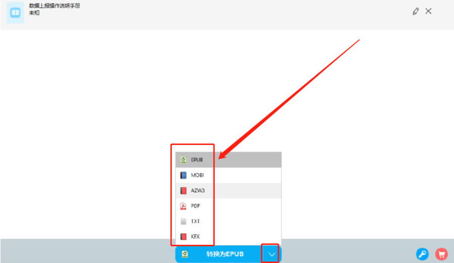 4.设置好转换的电子书之后我们在界面下方点击转换格式的列表图标,然后可以在出现的选项中选择想要转换的电子书格式。