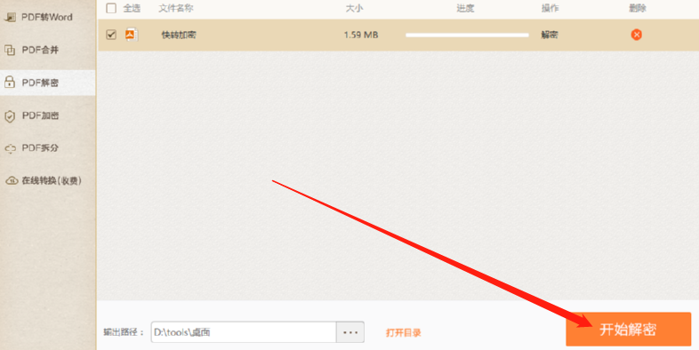 4.设置好输出保存位置之后我们就可以点击软件界面右下角的开始解密这个功能按钮开始解密文件的操作了。
