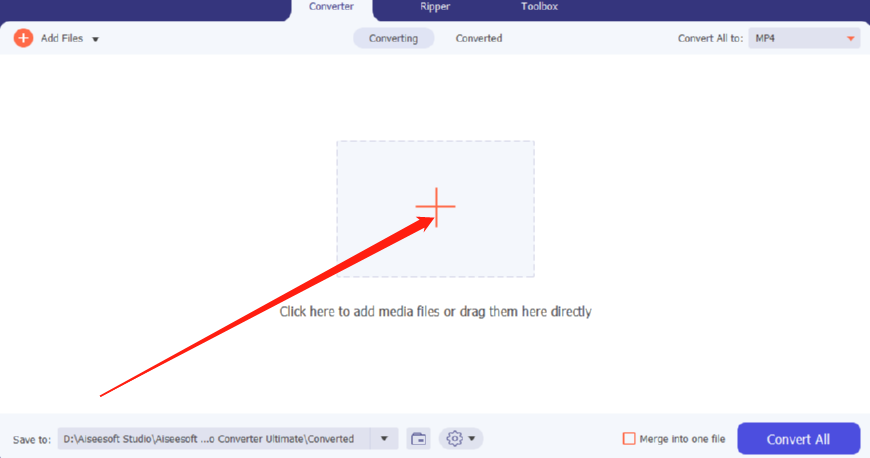 1.首先第一步我们打开软件之后在软件的convert这个转换模块中点击界面中间的加号按钮。