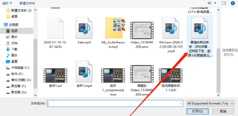 2.点击加号按钮之后下一步会打开一个选择文件的界面,然后在界面中我们选中想要转换成音频的那一个视频文件。