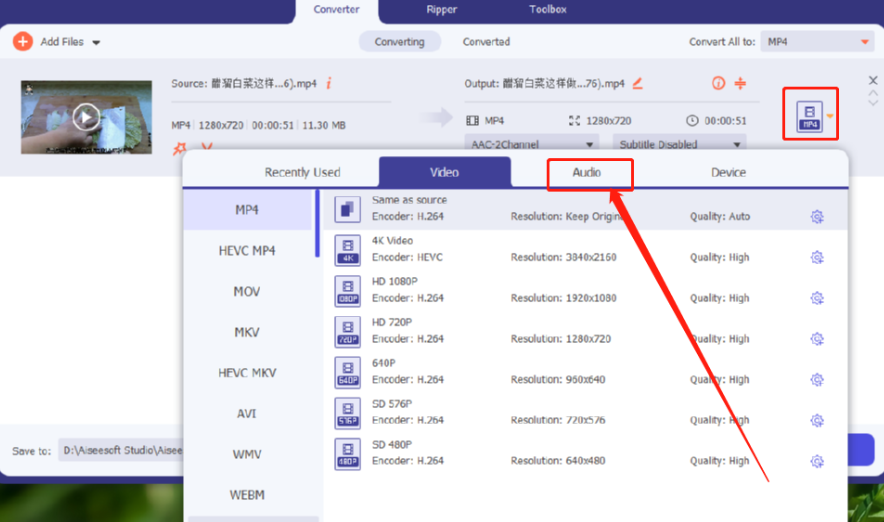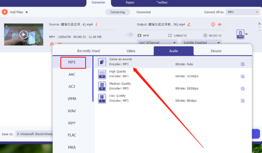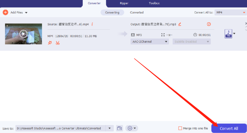 Aiseesoft Video Converter Ultimate将视频转换成音频的方法教程