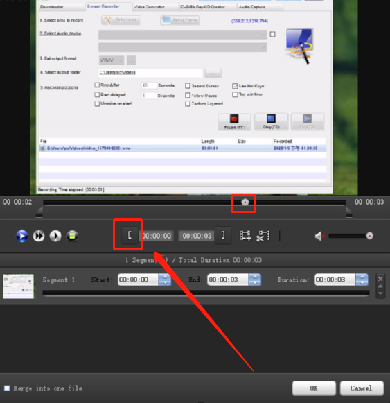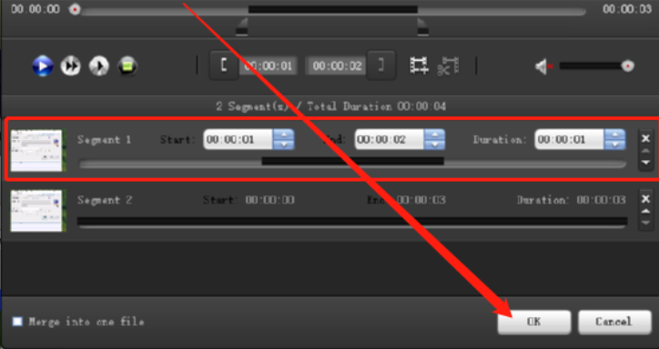 6.点击这个按钮之后我们选择剪切的视频片段就成功添加到剪切列表当中了,然后我们需要点击这个界面下方的OK按钮。