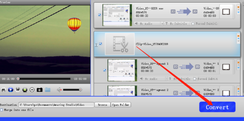 7.最后点击OK按钮会回到软件的主界面中,此时可以看到我们选择剪切的那一个视频片段,然后我们点击界面右下角的Convert转换按钮就可以将剪切的视频文件转换保存下来了。