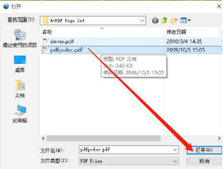 2.点击文件夹图标之后会出现一个打开文件的界面,我们在这个界面中选中想要分割的PDF文件之后点击右下角的打开按钮。
