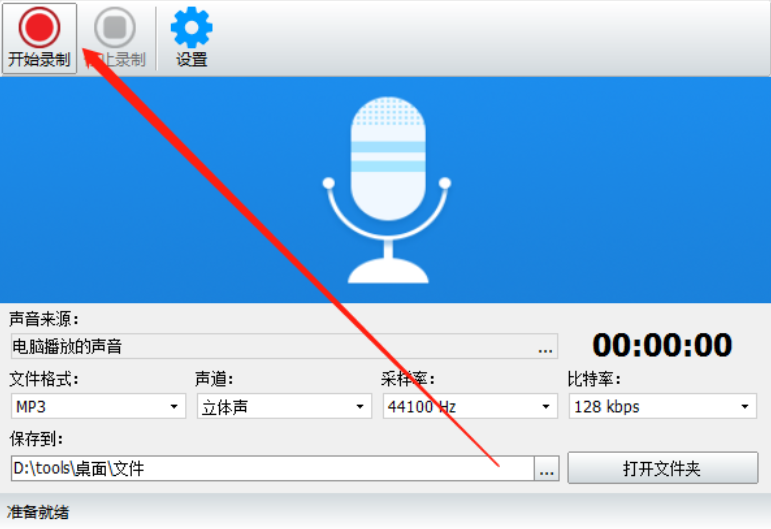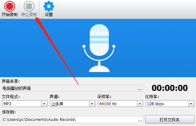 5.设置好这些参数之后我们点击界面左上角的开始录制按钮就可以开始录制音频的操作了。