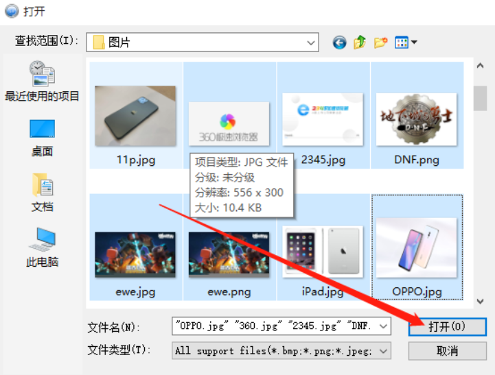 3.打开选择图片的界面之后,我们在其中找到想要制作成GIF动图的图片并选中,选中之后点击右下角的打开按钮即可。