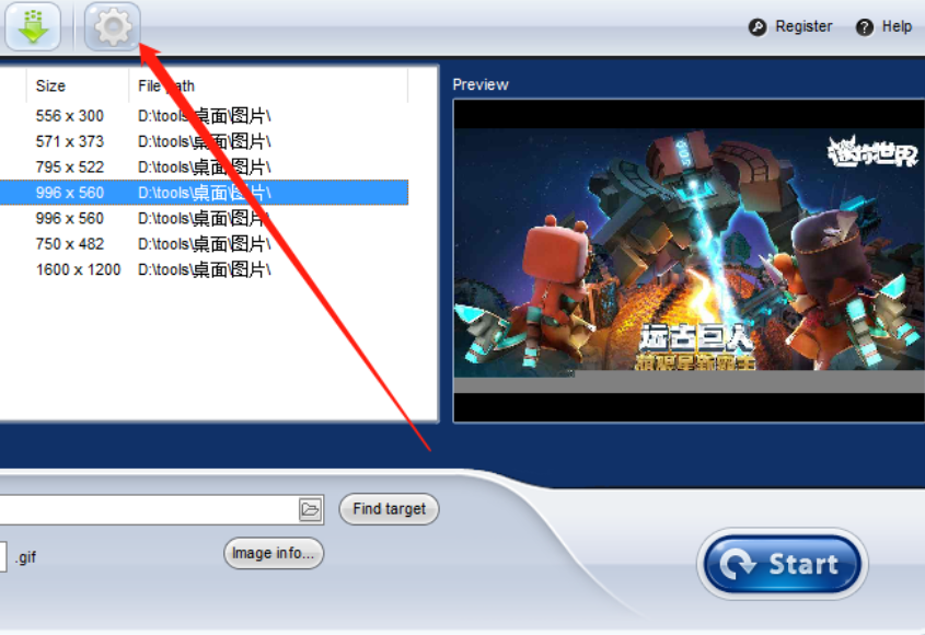 4.点击这个打开按钮之后我们在界面中就可以看到添加进来的一些图片文件了,然后我们需要点击界面上方的设置图标。