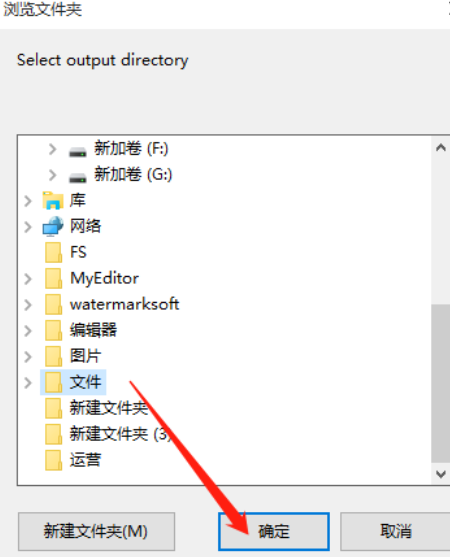 6.紧接着下一步我们点击输出路径的文件夹图标,然后在出现的界面中选中想要保存输出文件的位置,选中之后点击确定按钮。