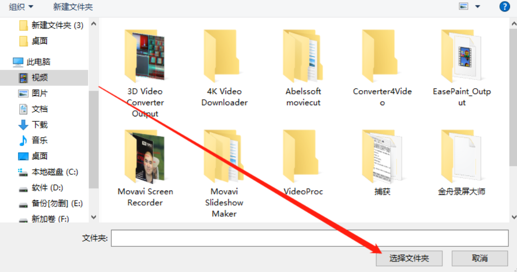6.打开选择下载视频储存位置的界面之后,我们在界面中选中想要保存下载视频的文件夹,然后点击右下角的选择文件夹按钮。