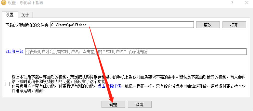 7.最后自定义选择好保存下载视频的文件夹之后,点击设置界面下方的这个确定按钮就可以更改视频下载的输出保存位置了。