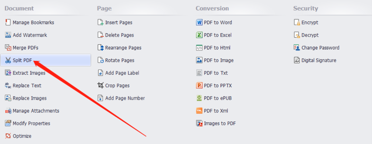 1.首先第一步我们打开软件之后在软件的功能界面中找到Split PDF这个分割PDF文件的功能,然后点击进入到其中。