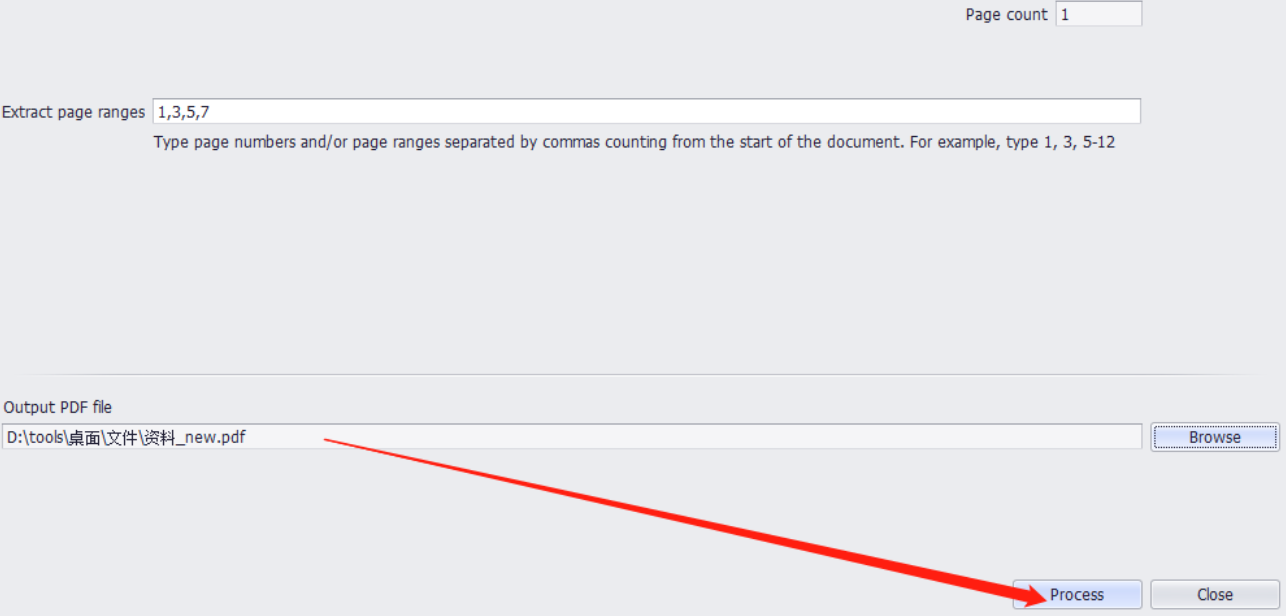 6.最后设置好分割文件的输出位置之后我们点击界面右下角的Process这个按钮即可开始分割PDF文件的操作。