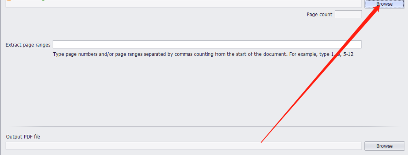2.打开分割PDF文件的功能界面之后,我们点击界面中的Browse这个浏览文件的按钮,点击之后即可选择想要分割的PDF文件。