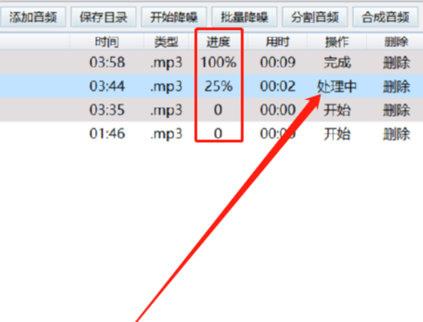 5.点击确定按钮之后我们就可以看到界面中的进度栏在走动了,最后只需要等待降噪操作完成即可,完成之后即可打开音频试听。