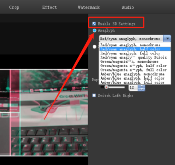 4.点击这个3D功能图标之后就进入到设置3D效果的界面了,然后我们勾选界面中的Enable 3D Settings这个选项,接着可以选择Anaglyph这个选项下面的浮雕效果,用户根据自己的需求进行设置即可。