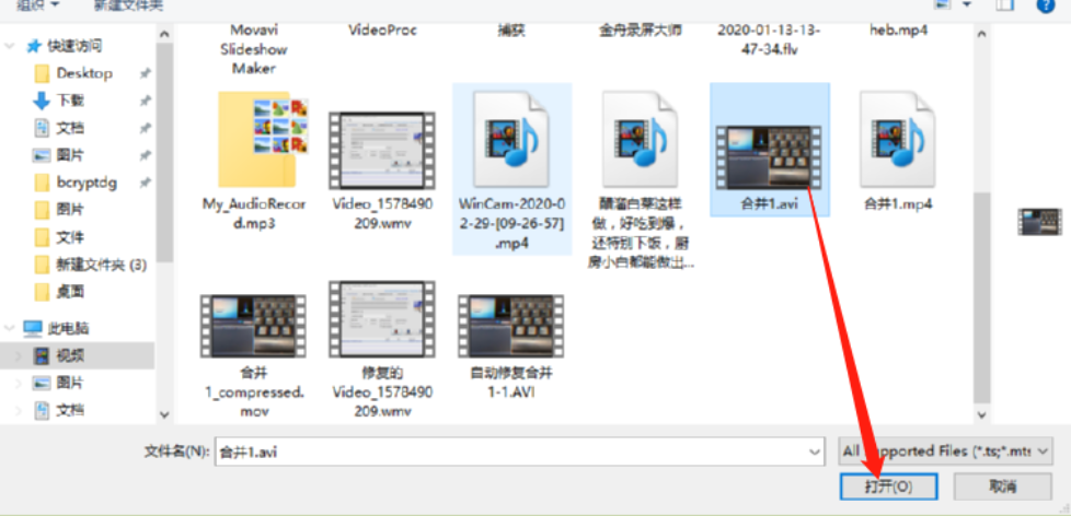 2.点击添加文件之后就打开一个选择文件的界面了,在这个界面中我们选中目标视频文件之后点击右下角的打开按钮。