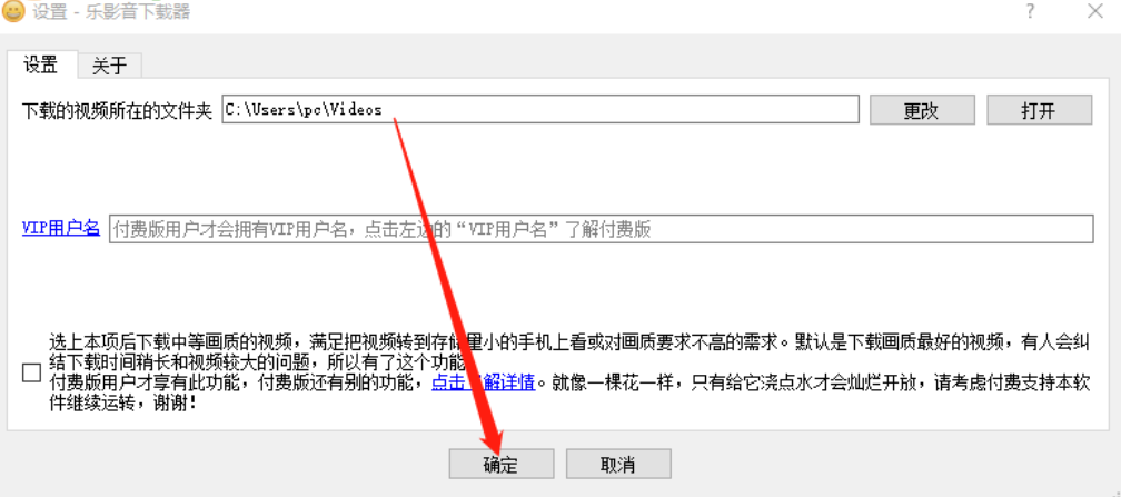 7.最后自定义选择好保存下载视频的文件夹之后,点击设置界面下方的这个确定按钮就可以更改视频下载的输出保存位置了。
