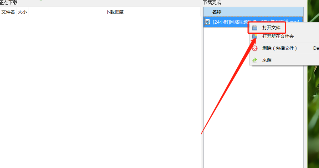 3.等到下载完成之后我们在界面的右边下载完成列表中就可以看到下载的这个网页视频了,右键点击视频文件之后在出现的选项中点击打开文件即可查看下载的视频。