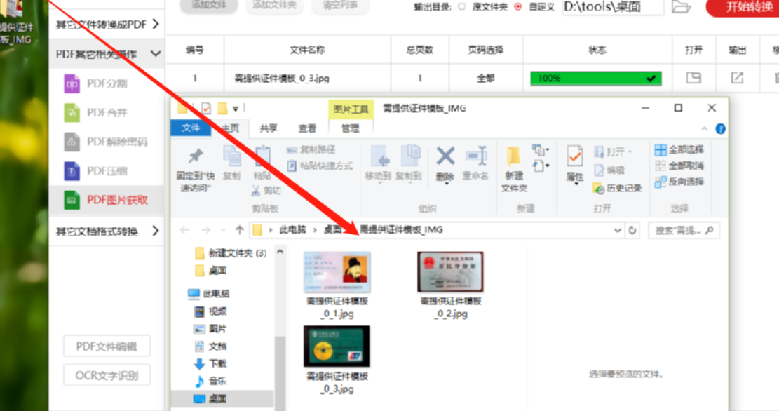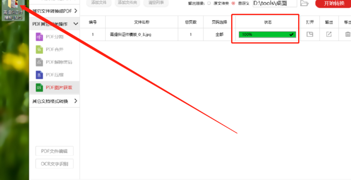 5.等到转换完成之后在界面中会显示状态为100%,然后在输出目录位置就可以看到图片保存的文件夹了,如下图中所示。