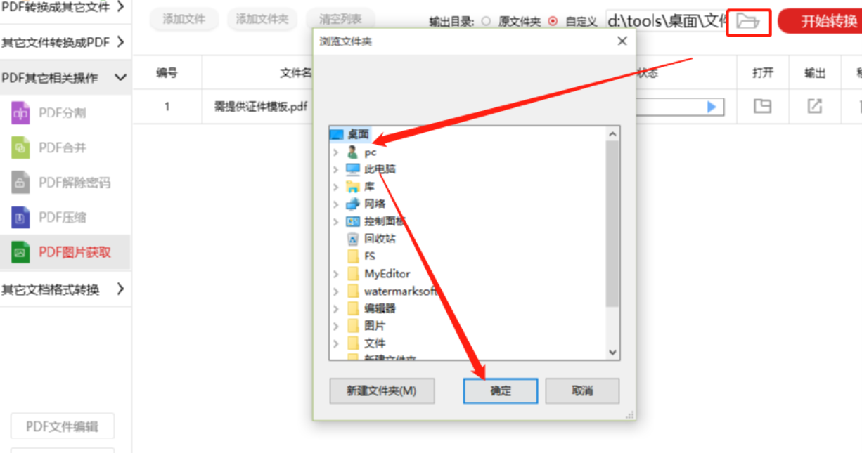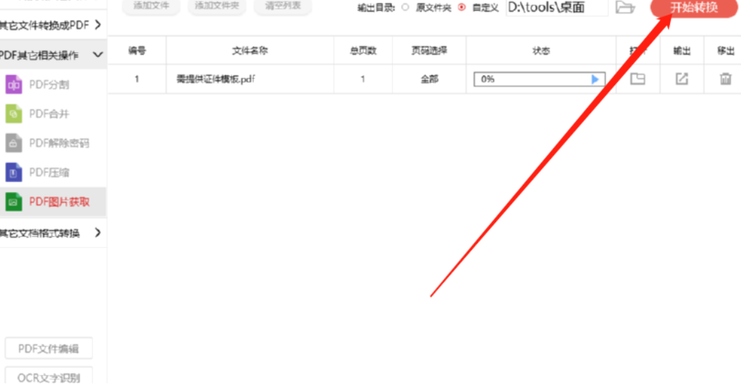 4.设置好提取图片的保存位置之后我们就可以点击界面右上角的开始转换这个功能按钮开始转换操作了。