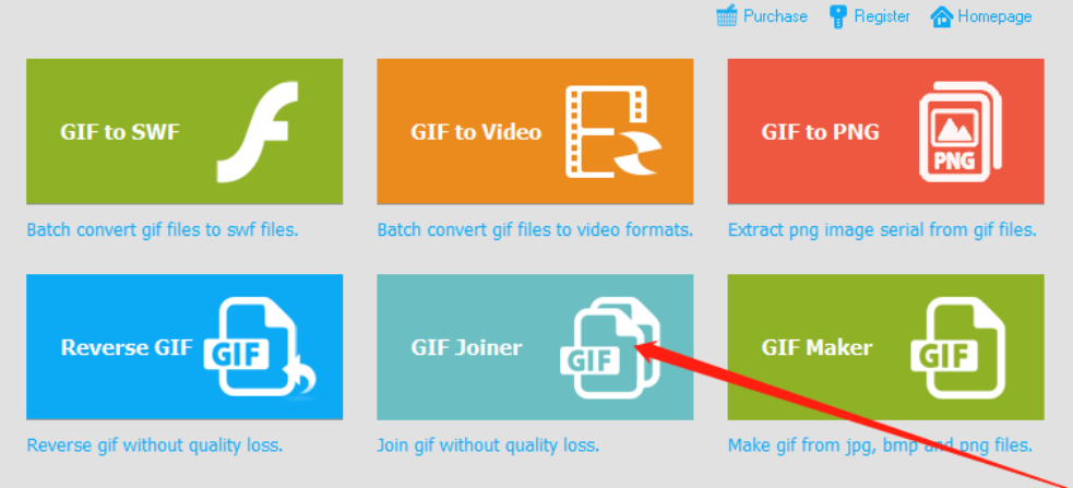 1.首先第一步我们打开软件之后在软件的主界面中点击GIF Joiner这个GIF合并功能按钮,点击之后即可进入到合并GIF的功能界面。