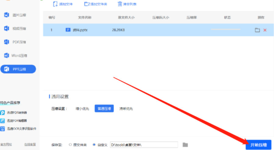 迅捷压缩软件如何压缩PPT文件?迅捷压缩是一款功能非常丰富的压缩软件,其中有压缩图片、压缩视频、压缩PDF等压缩功能,可以帮助用户压缩多种格式的文件,并且还是可以进行批量压缩的,用户只需要将想要压缩的文件全部添加到软件之后,根据自己的需求进行压缩设置,设置完成就可以开始压缩操作了。