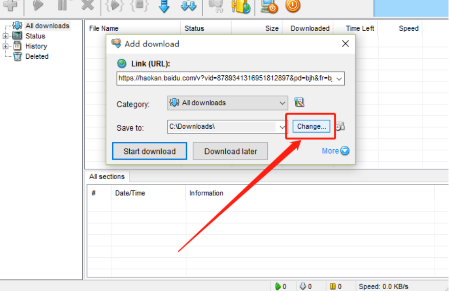 3.将想要下载的网页复制粘贴到软件之后,我们点击界面中的Change这个按钮可以更改文件下载之后的储存位置。