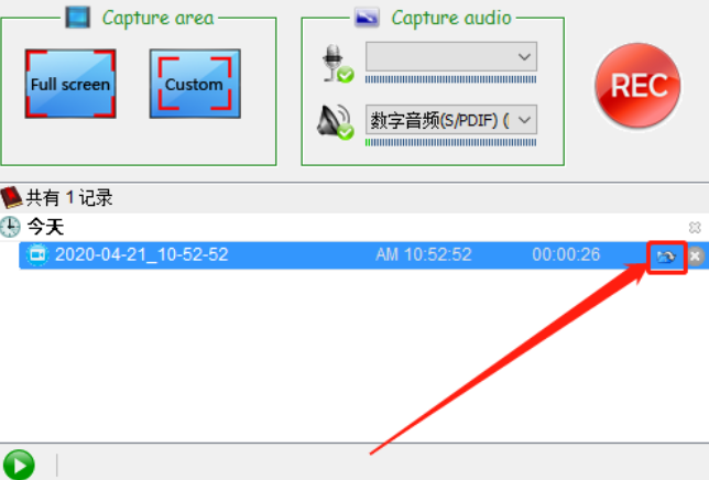 6.停止录制操作之后,我们在界面中就可以看到录制好的视频列表了,双击即可播放录制的视频,点击右边的文件夹图标的话可以打开视频储存的位置进行查看。