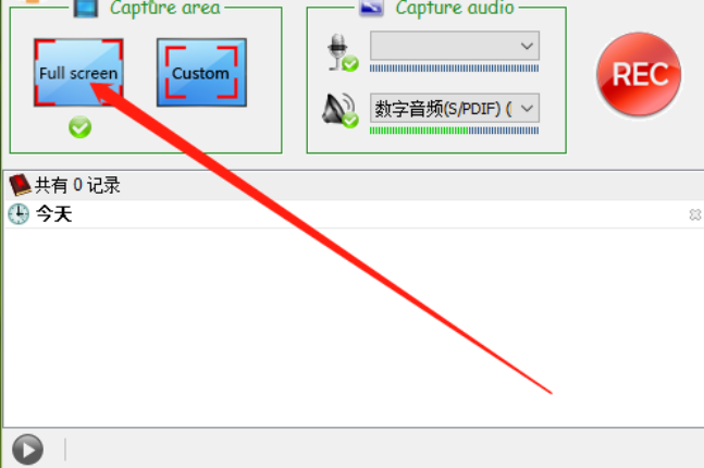 1.首先第一步我们打开软件之后在软件界面中点击Full screen这个功能,点击之后即可出现选择录制区域的选框。