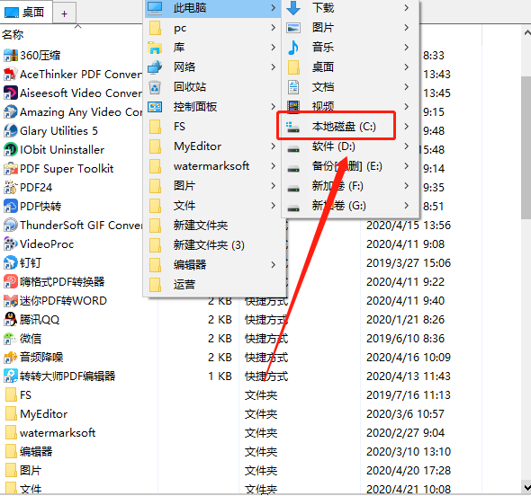 2.点击打开选择文件路径的下拉列表之后,我们在其中选择想要搜索文件所在的文件夹或磁盘,选中之后即可切换到该路径中。