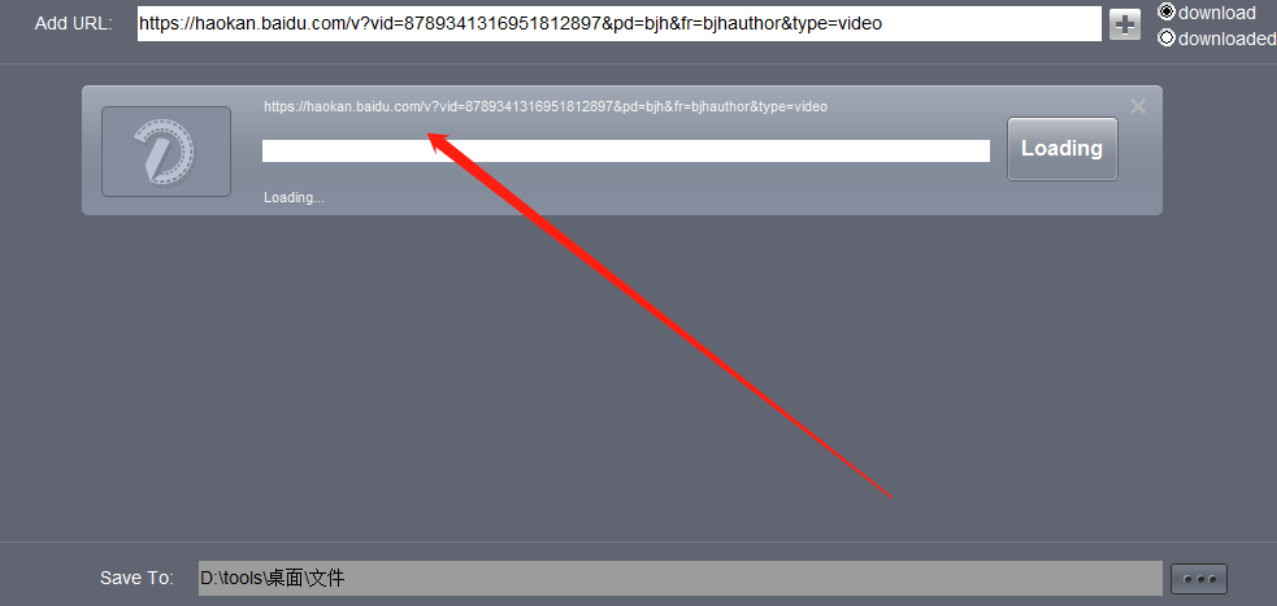 5.点击加号之后软件需要先识别分析连接中的视频文件,我们将会看到一个loading加载提示,等待软件分析到视频文件即可自动开始下载。