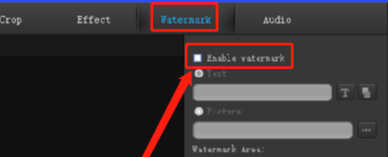 4.点击这个编辑功能之后在出现的编辑视频界面中选中Watermark这个水印选项,然后勾选界面中的Enable waterark选项。