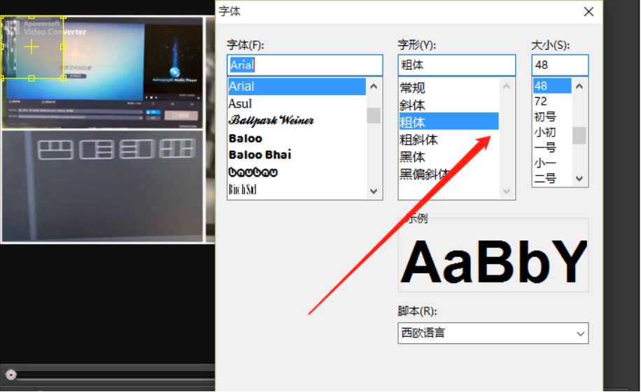 6.设置好水印宽高参数之后,我们点击水印内容右边的T字按钮,然后就可以打开设置水印文字字体、字形和大小的界面了,用户根据自己的需求设置即可。