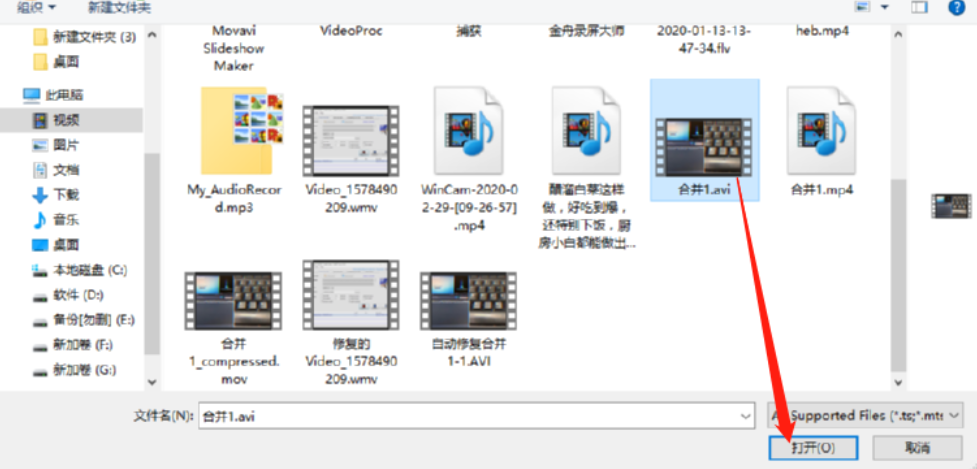 2.点击添加文件之后就会打开一个选择文件的界面了,在这个界面中我们找到想要添加水印的视频文件并选中,然后点击打开按钮。