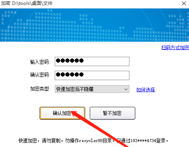 6.最后我们在设置好想要加密文件的密码以及类型之后,点击界面中的确认加密这个功能按钮就可以开始加密文件的操作了。