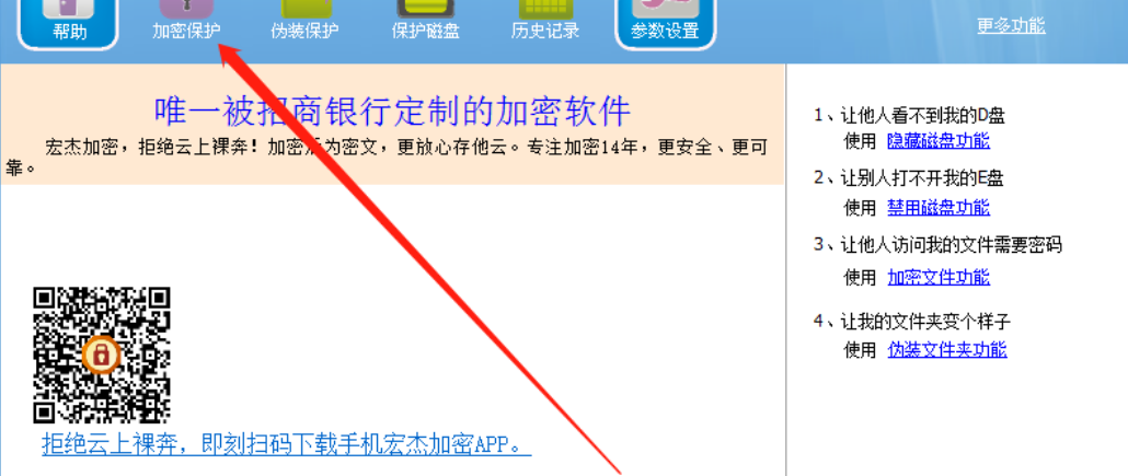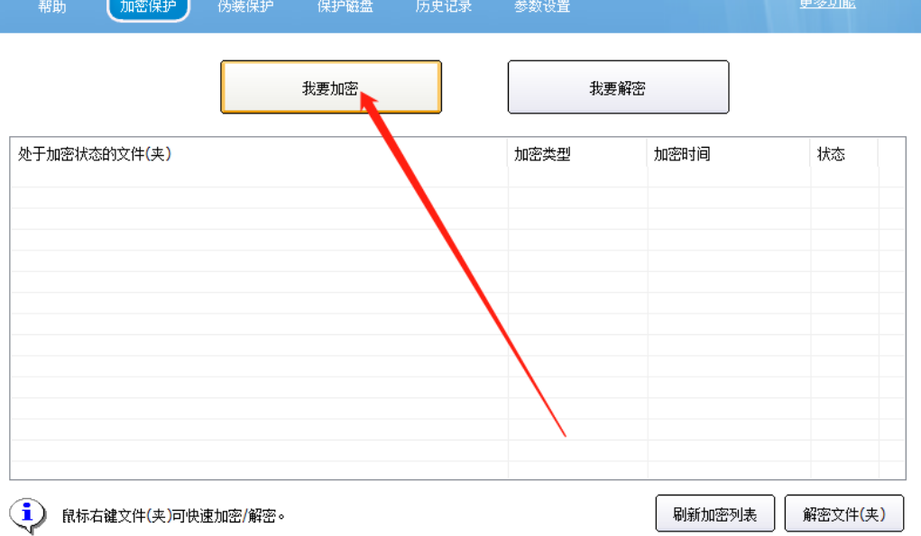 2.进入到加密保护功能界面之后,我们在界面中就可以看到我要加密这个功能按钮了,然后需要点击我要加密这个功能按钮。