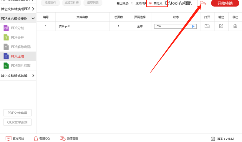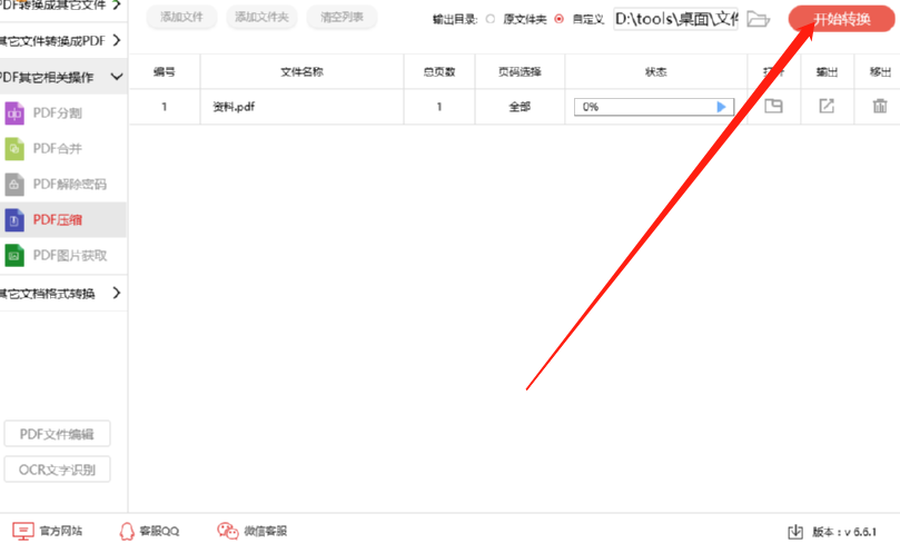 5.等到我们设置好文件的输出储存位置之后,点击界面右上方的开始转换这个按钮就可以开始压缩文件的操作了。