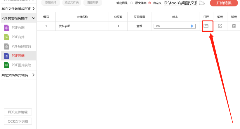6.最后文件压缩的操作完成之后,我们就可以点击打开选项下面的文件夹图标来打开查看压缩之后的PDF文件了。