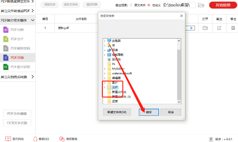 4.点击这个文件夹图标之后会打开一个选择文件输出位置的界面,我们在这个界面中选择文件压缩之后的输出储存位置。