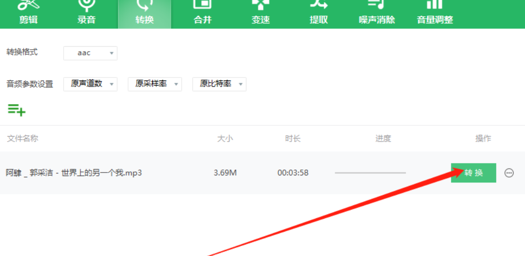 5.下一步我们在设置好音频转换参数之后就可以点击后面的转换按钮开始转换这个音频文件了。