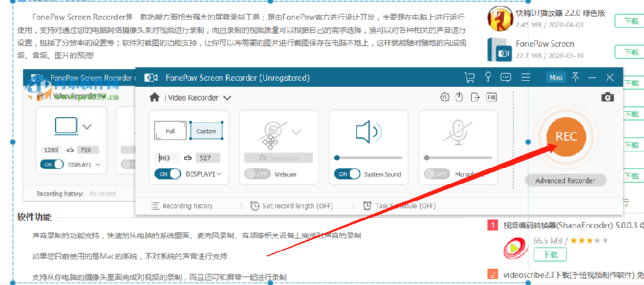 5.选择好录制区域的大小之后我们打开要操作的界面,将录制区域移动到想要录制的位置之后,点击软件界面中的REC这个按钮即可开始录制。