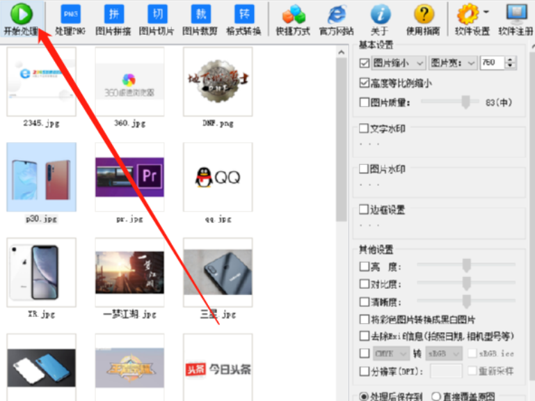 6.最后一步我们只需要点击界面上方的开始处理这个功能按钮就可以开始批量缩小选择的这些图片了。