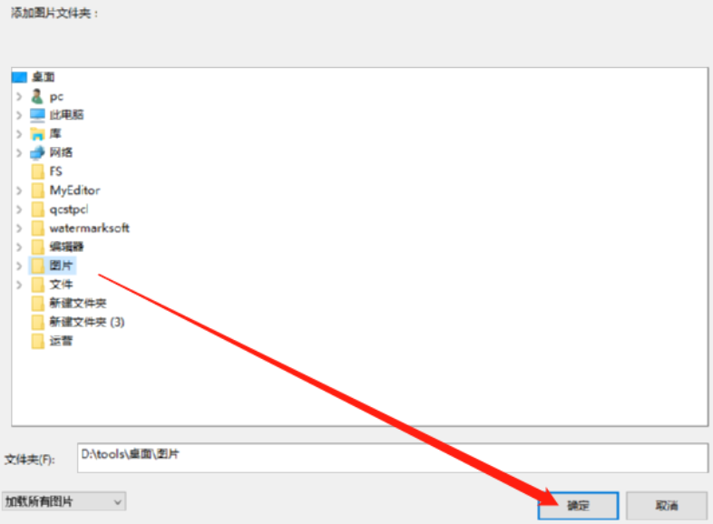 2.点击添加图片之后我们在打开的选择文件的位置选中图片所在的文件夹,然后点击确定按钮选择该文件夹。