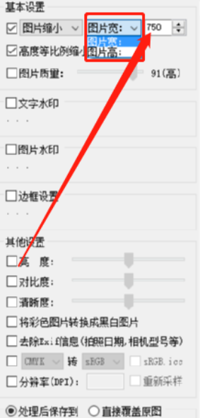 4.勾选之后还可以自定义设置缩小的宽高参数,选择宽或者高之后在旁边输入参数即可。