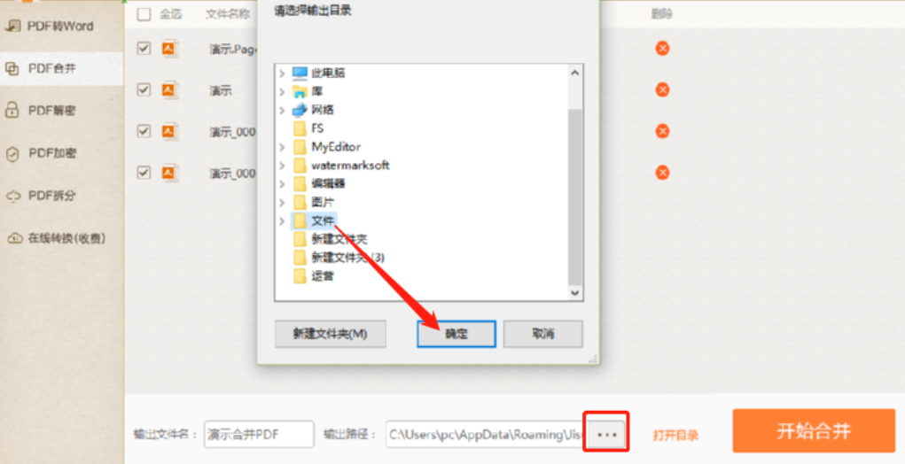 5.下一步就是点击输出路径选项右边的三点按钮了,点击这个三点按钮可以选择文件的输出保存位置,这样方便查看文件。